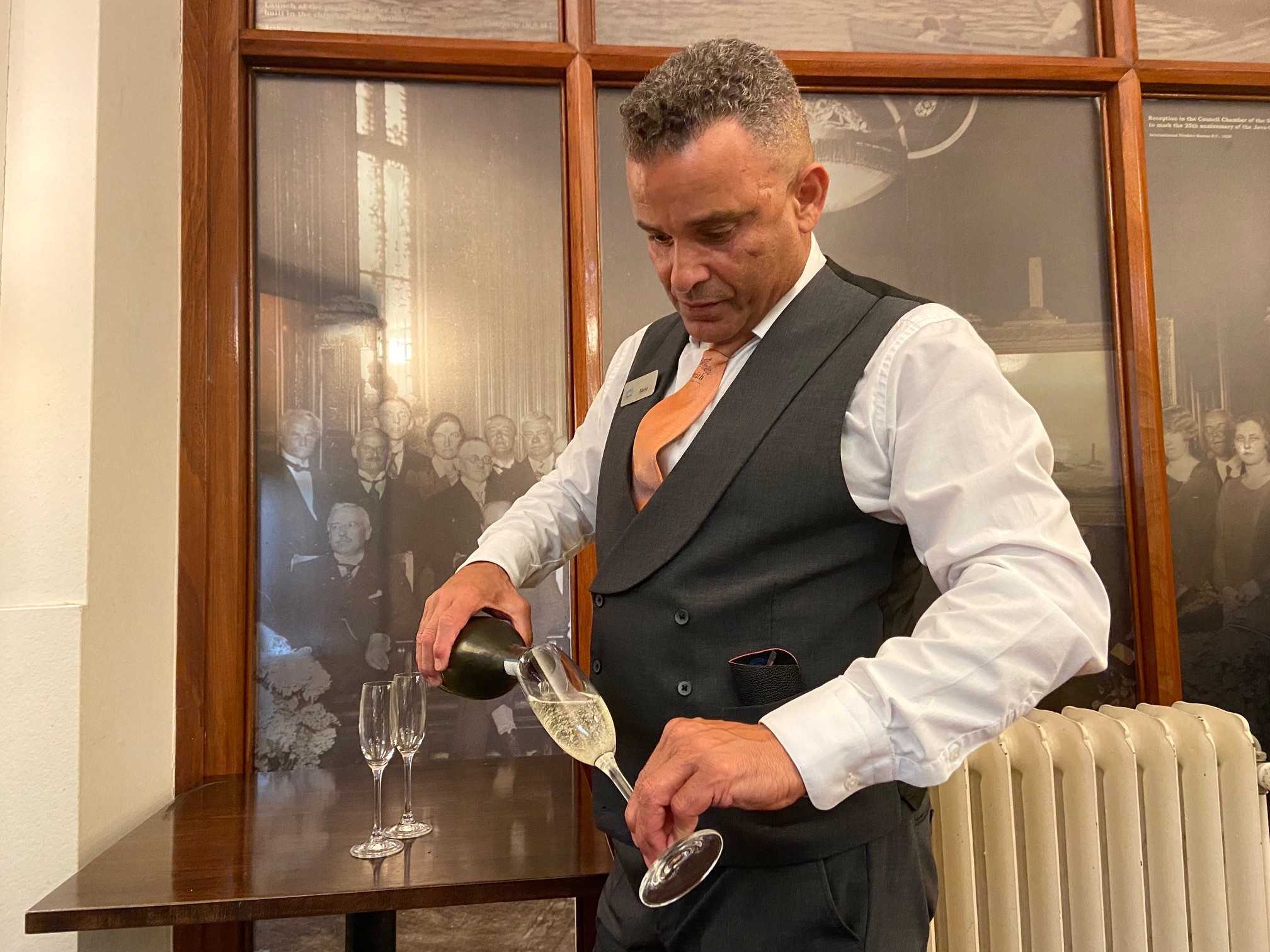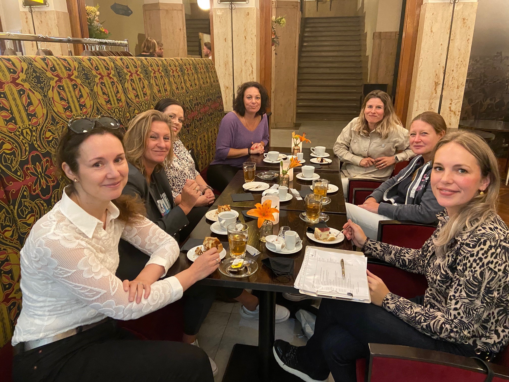 Het is al prachtig weer als we om half 10 de bus in stappen. Bij het monumentale Scheepvaarthuis in Amsterdam worden we ontvangen met koffie en gebak. Begin deze eeuw is het gebouw na een fikse renovatie in oude glorie hersteld en is het Grand Hotel Amrath hier gevestigd. Na de rondleiding volgt een feestelijke lunch met bubbels en dan stappen we in de bus om in Volendam weer uit te stappen.
